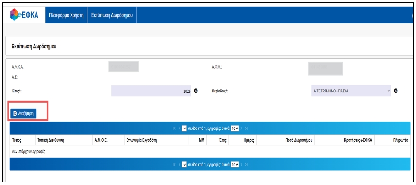 (ΟΠΣ/e-ΕΦΚΑ) – Νέα Ηλεκτρονική Υπηρεσία «Εκτύπωση Ενημερωτικού Σημειώματος Δωροσήμου»