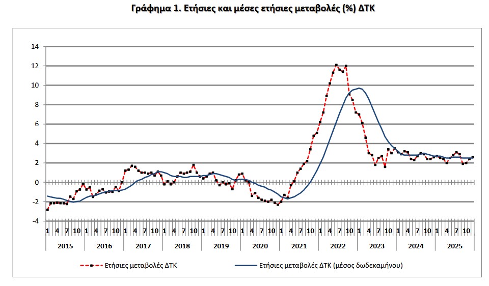Ο μέσος ΔΤΚ του δωδεκαμήνου Ιανουαρίου 2025 – Δεκεμβρίου 2025, σε σύγκριση με τον αντίστοιχο Δείκτη του δωδεκαμήνου